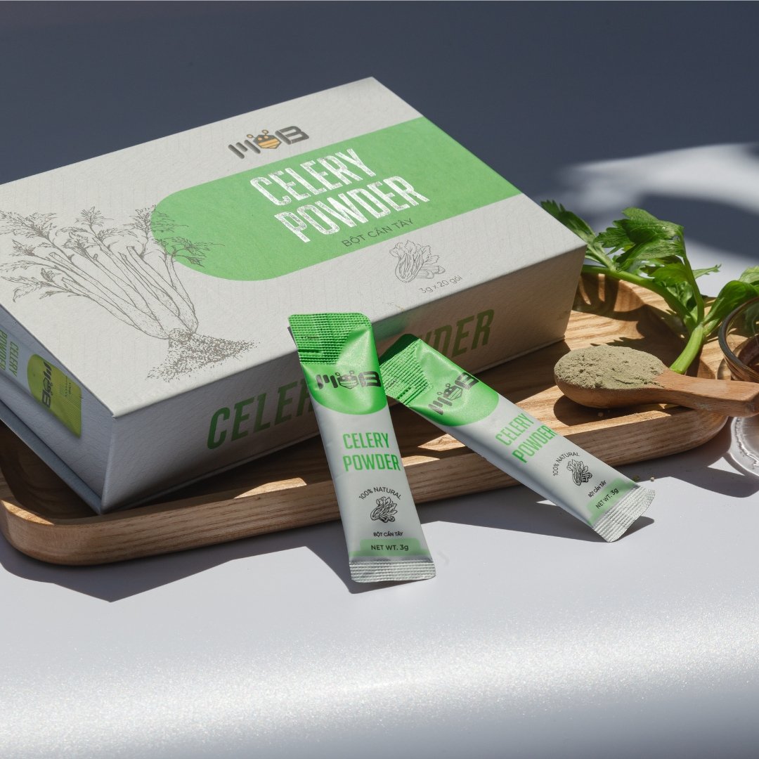 Made from fresh celery plants grown in the fertile lands of Vietnam, MOB celery powder is 100% natural and free from any harmful chemicals or additives. With its unique flavor and high nutritional value, this product is not only the perfect ingredient for salads, juices, or smoothies but also offers numerous health benefits, including supporting blood pressure regulation, improving digestion, and boosting immunity.