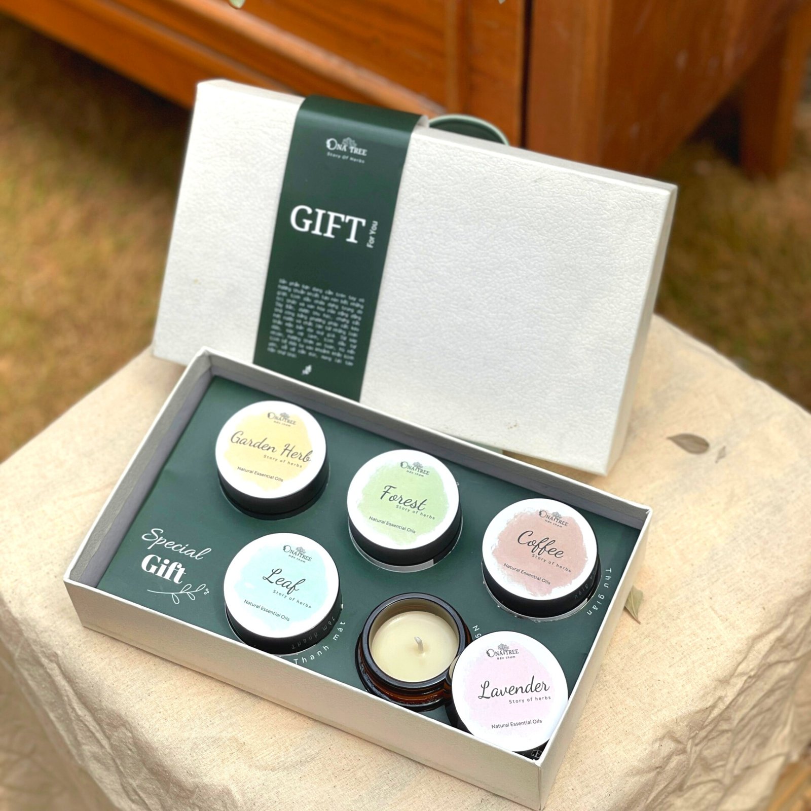 OnaTree has dedicated this gift set with 5 scented candles as a gift for yourself or all the amazing people in your life. The scented candles are made of soy wax and essential oils, carrying the aroma and spirit of the Northern West Mountains in Vietnam. Each one has a different scent to provide the most satisfying relaxation while being an extremely lovable gift that you can think of.