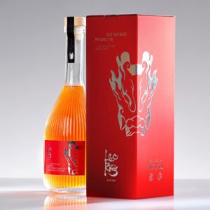 Inside the box, you’ll find Má Đào Phùng Thị’s apricot wine, a smooth and aromatic delight that has been carefully aged for two years. This wine is paired beautifully with Cầu Đất coffee-infused Neapolitan chocolates and Lam Dong coffee blossom honey, creating a harmonious blend of bold, earthy flavors with delicate, sweet notes. But that’s just the beginning – accompanying these indulgent treats are classic Vietnamese snacks such as crispy banana peanut rolls, mango rice puffs, and chewy dried plums.